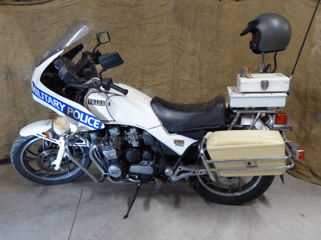 During the early to mid-1980s, this Yamaha bike was the standard issue New Zealand Police motorcycle (as well as Western Australia), and it was first issued to the Corps of Royal New Zealand Military Police (RNZMP) around 1985. With a top speed of 203km/h, it was the terror of many military convoys travelling on New Zealand roads! In addition to convoy escort duties, the XJ750-mounted Military Police also used the bike when performing traffic control duties in all military camps throughout New Zealand.