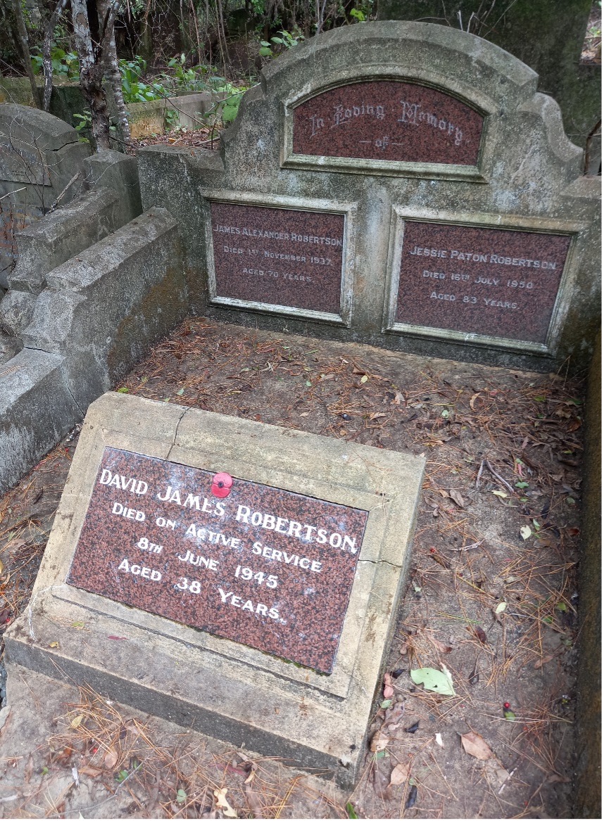 After what must have been a joyous cable informing her that her fiancé was returning home the previous month, on 16 June 1945 another cable was sent to Ena, carrying the devastating news that he was now missing, believed drowned. Aside from Ena, David left behind a grieving mother and a younger brother, Alexander Baxter Robertson, who had also served during the war.