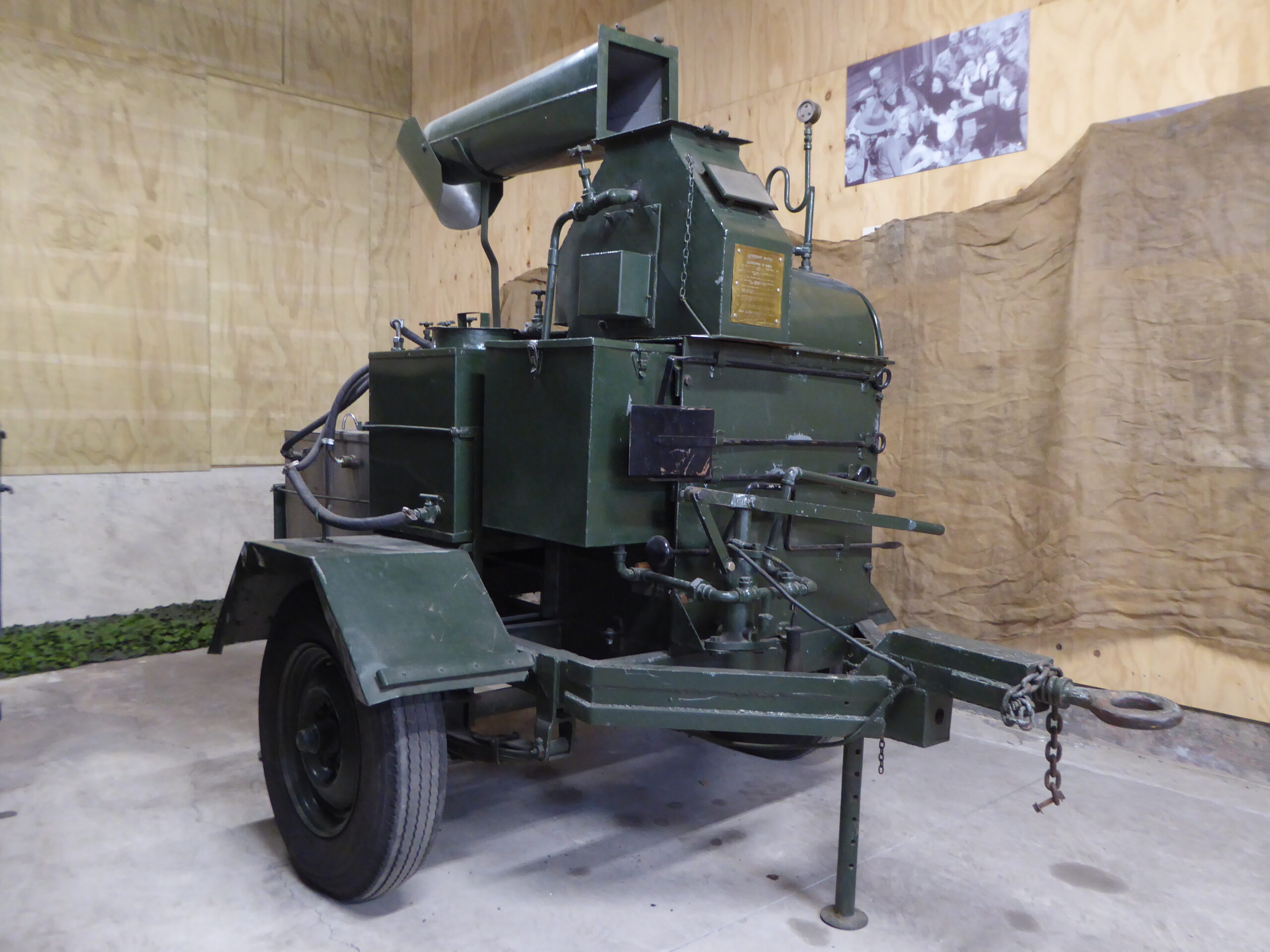 Fighting military bureaucracy all the way they firstly produced and had accepted stationary kitchens, then a larger 4-wheeled mobile kitchen. In late 1942 the Army Catering Corps requested a small two-wheeled cooking unit to cater for 100-150 personnel to be towed by a jeep or possibly dropped by parachute into inaccessible areas. The weight was not to exceed one ton. When produced, this trailer was mounted with a boiler, roasting oven, four small steamers or stock pots, a cold water tank for boiler supply, and a 20 gallon copper insulated tank. It was named “The Junior Mobile Cooker”.